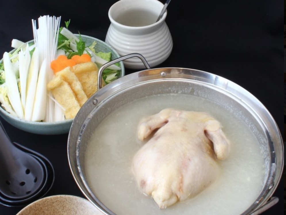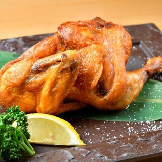 丸鶏をじっくりと時間をかけ低温調理し揚げる事で外はパリパリで中はとってもジューシーに仕上げております。シンプルに塩で召し上がります。