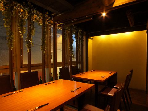 木の優しさが溢れる落ち着いた雰囲気のテーブル半個室。