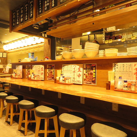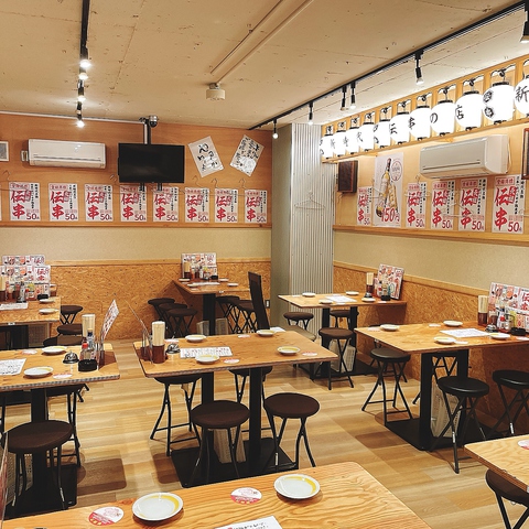 カウンターからテーブル席をご用意!昭和レトロな雰囲気に、どこか懐かしく落ち着く店内。お仕事帰りに同僚を誘ってサクッと飲みに行きたい!そんな時にぴったりなお席を多数ご用意しております。絶品の伝串50円を是非この機会にお愉しみください!