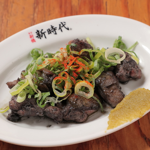 パリッパリに仕上げ、余分な脂を落とした鶏皮はコラーゲンの宝庫★表面はパリパリ、中はモチモチ、何本でも美味しく食べれます。タレには万病に効くといわれる高麗人参を使用。甘口で美味しい自家製高麗人参タレと伝串の相性抜群。今では累計販売本数2億本を