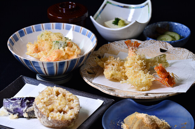 孔雲ではランチメニューも豊富にご用意。平日ランチ限定の天丼もございます。天麩羅一筋30年以上の筋金入りの天麩羅職人と、京料理店で修業を重ねてきた職人の本格天麩羅を是非お楽しみ下さい。