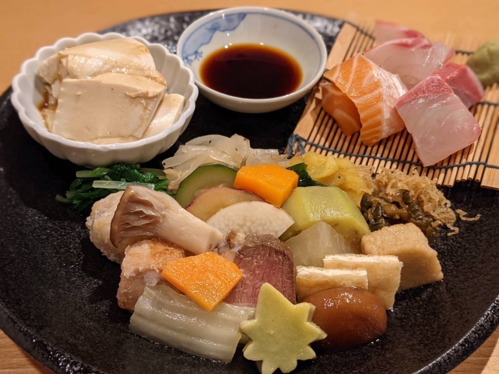 定食形式になっており、ホクホクの白ごはんに相性抜群のお味噌汁、メインのプレートには数種類のおばんざいを盛り合わせ、女性にも人気の一口サイズ。いろいろ楽しめて大満足の内容です。