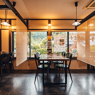 自然と情緒を感じる閑静な住宅街に立つ一軒家の当店では、ガラス張りの大きな窓から差し込む光と四季の顔を堪能いただけます。オープンキッチンに面したカウンター席は一人でも気軽に。窓側のテーブル席は、すだれカーテンで仕切られた落ち着いた空間でお食事をお楽しみいただけます。また、座敷の個室席はお子様連れでも最適。実家に帰ったようなアットホームな空間で、ぜひ当店のこだわり料理をご堪能ください。