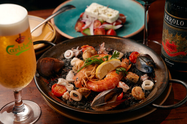 イタリアン、フレンチ、スペイン等ヨーロッパの地中海料理を楽しめる当店。特にこだわるのが食材です。お肉はカルパッチョからステーキまで、黒毛和牛を使用。インスタ映え間違いなしの大迫力「ラムチョップ」は、ナイフいらずのとろとろ食感!大ボリュームなので3人以上での注文がおすすめ。野菜は、無農薬野菜を中心に新鮮な旬野菜を使用。〆には大きな具材がたっぷり&魚介の旨みが凝縮した「イカ墨のパエリア」がおすすめ!