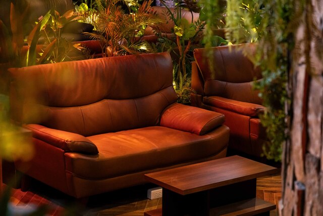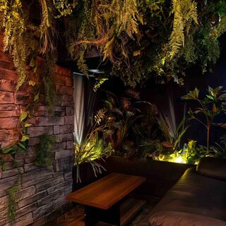 内装は、まるで都会のジャングルにいるかのような非日常感を演出しています。豊かなグリーンに囲まれた空間は、心を癒すオアシスのよう。天井から垂れ下がる観葉植物や、壁面を彩る鮮やかな緑が、都会の喧騒を忘れさせてくれます。シックでモダンなインテリアが調和し、心地よい照明と共に洗練された雰囲気を醸し出しています。ここでは、特別なひとときを過ごすための理想的な環境が整っています。