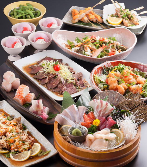職人が仕入れた旬の美味しい食材を使用した和食料理と飲み放題がついた自慢の宴会コースはコスパ抜群です!季節によって旬の食材で作り上げるので、お客様を飽きさせません!豪華な厳選素材を活かしたコースを多数ご用意しておりますので、味はもちろん、見た目にこだわった彩り豊かな料理をぜひお楽しみください!