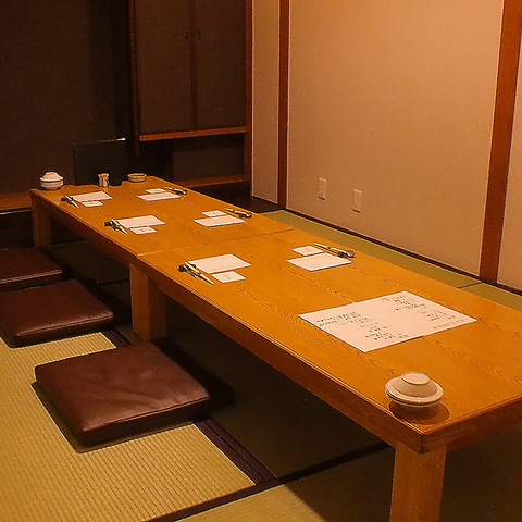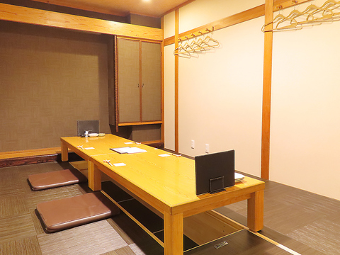 店内は全席完全個室。2名から最大26名まで利用可能で、接待や会食、大切な記念日にも最適。掘りごたつ席でゆったりと過ごせる温かみのある空間が魅力です。