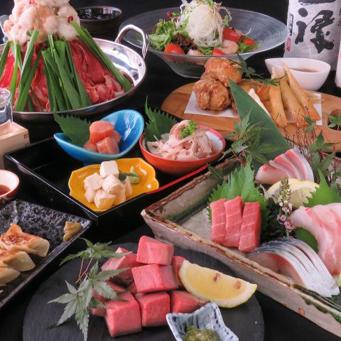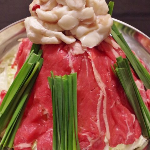 九州産和牛のぷりぷり【モツ】とやわらか【牛ロース】を存分に使用☆牛骨と天草大王の鶏がらを、10時間かけて抽出してつくる、こだわりのスープと絶妙なマッチでできたもく鍋はハマること間違いなし!一人前からもOKですよ!大人気牛タンもついてますよ!!
