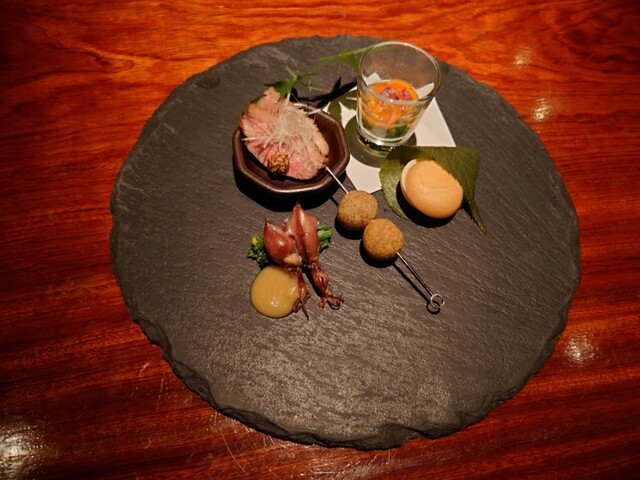 当店では、和洋折衷の創作料理を数多くご提供しております。国産を中心とした厳選食材を使用。拘り抜いた和モダンなお料理は、どれもこれも素材の滋味を感じる味わいです。定番以外に、季節の移り変わりをお愉しみ頂ける限定メニューもご用意しております。さらに「お客様のお好み」というスペシャルメニューもお見逃しなく!