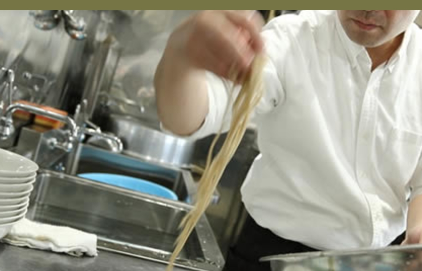 一般的な蕎麦店ではゆで時間は2~3分、ラーメン店では3~5分。つけ麺では6~8分。うどん店で8~12分となっております。それに対し、当店の蕎麦のゆで時間は、つけ蕎麦で60秒、ザル蕎麦で30秒、十割蕎麦は25~30秒。手打ち式蕎麦はご提供までの時間が圧倒的に短いのが大きな強みです。