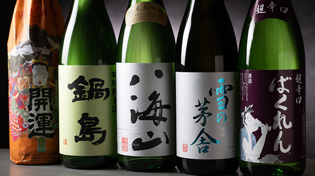 全国から厳選した希少な日本酒を8種類ほど取り揃えております。四季折々の限定酒も仕入れておりますので、旬の酒で季節の移ろいをお楽しみください。一合またはグラスでのご提供となりますので、お好みの量を料理に合わせてお召し上がりいただけます◎