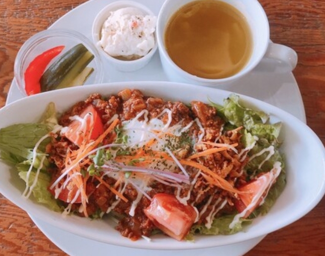 キッズプレートやナゲットなど子どもも喜ぶメニューが揃い、家族ランチにもぴったり。木の温もりを感じる広々とした店内は、大人数でもお一人様でもゆったり過ごせる落ち着いた空間。窓際席からの景色も気持ちよく、くつろぎの時間を楽しめます。