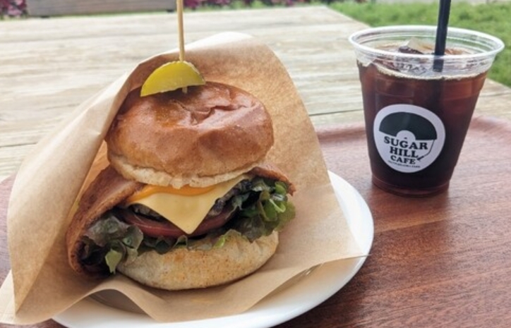 クラシックバーガーやABCバーガーなど本格派バーガーに加え、スッキリとした味わいの水出しコーヒーやデザートも人気。店内にはアウトドア雑貨やアメリカンテイストの小物も並び、遊び心ある雰囲気の中でゆったりと食事を楽しめます。