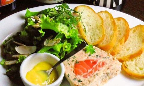 スコットランド産の新鮮なサーモンを使ったテリーヌは、バケットとともに前菜として最適な一品。口当たりがよく、食欲をそそる味わいが特徴です。
