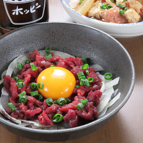お酒がスイスイすすむ「馬刺し/馬刺しユッケ」が大人気!馬肉の良い歯ごたえと旨味を堪能してください!