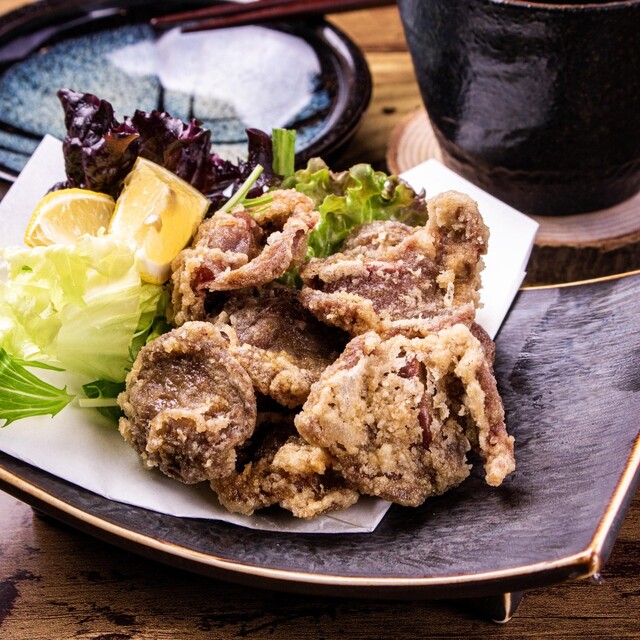 豪快な炭火で一気に焼き上げるシンプルで力強い料理。はかた地鶏の旨味が最も味わえる炭火焼きでお持ちしております。炭の薫りとジューシーさをご堪能ください。お好みで柚子胡椒と九州醤油を付けてどうぞ!