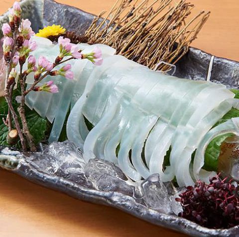 のどぐろだけではなく、生の国産本マグロ、北海道活けボタン海老、関あじ、明石の天然真鯛など毎日、築地で仕入れた最高級の鮮魚をご提供致します。都内では珍しい大きさのエビや、柔らかさや身の味わいがしっかりとした最高級のお刺身を、それぞれに良く合うおすすめの3種類の召し上がり方でご賞味ください!