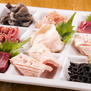 ホルモンは、希少部位を含めた全17種類をご提供しております。中でも、国産牛の小腸を使用した「特選ホルモン」は、プリプリの脂を楽しめる人気の一品。そのほか、一切冷凍せず生の状態でご提供することにより、鮮度の良さを堪能できる「ハツ」や、もも肉ならではの甘みと口どけがたまらない「厳選牛ユッケ」もオススメです。自家製ダレと特製のブレンド塩をご用意しておりますので、お好みで付けてお召し上がりください。