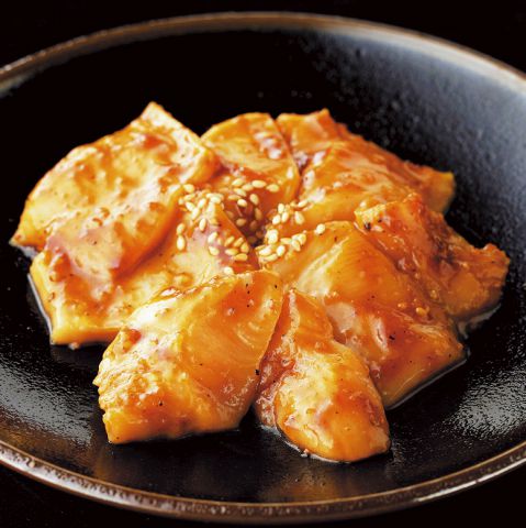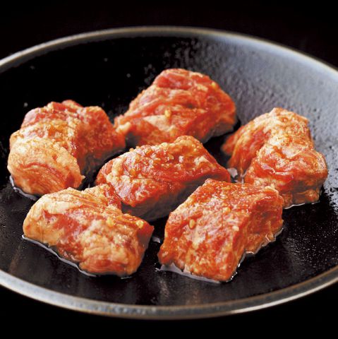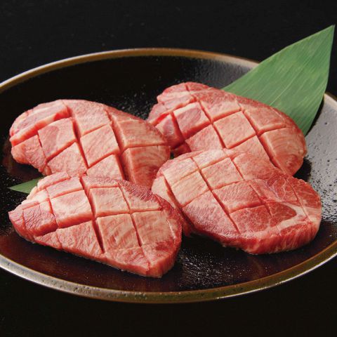 絶妙なサシのある「芯」の部分をつかった上牛タン。極厚にカットし、見た目にも美しい切込みを入れて、より美味しくお召し上がりいただけます。旨味溢れる肉汁と牛タンの食感をご堪能ください。