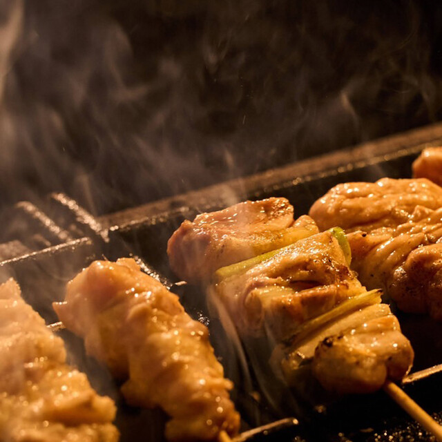 こだわりの炭火は尾張備長炭を使用!炭の組み方は研究を重ね最も理想とする形を実現いたしました。炭の遠赤外線効果で外はカリッと、中はジューシーな仕上がりに焼き上がります。しかし炭の効果だけではありません。職人が部位に合わせて華麗な手捌きで絶妙な火加減で仕上げることにより更なる美味さをご提供!