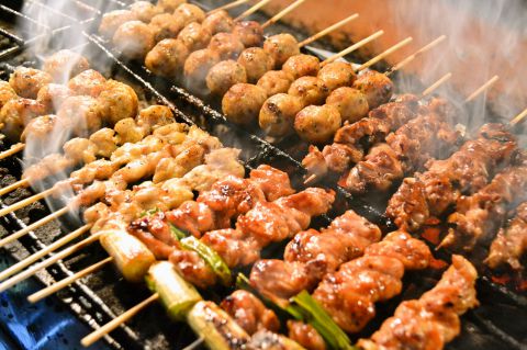 備長炭で焼く炭火焼き鳥は何といっても当店のイチオシです!秘伝のタレと塩味からお好みで、焼き上げアツアツのうちにご提供いたします!お酒との相性も抜群ですので、是非お試しください!食べ放題でも妥協は一切なし!本格焼き鳥をご賞味ください♪