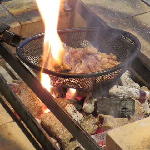 手作り柚子胡椒付きの親鳥の炭火焼きは、炭火で香ばしく焼き上げる人気のメニューです。+50円(税込)で自家製ポン酢がけにもできます。また〈自家製ポン酢〉〈手作り柚子胡椒〉は店頭でも販売中です♪