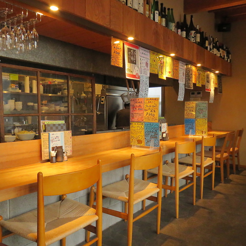 天井に見える梁や棚の木材から、いたるところで木のぬくもりを感じられます。ディナータイムには温かい照明に照らされ、いっそう隠れ家的な雰囲気に。