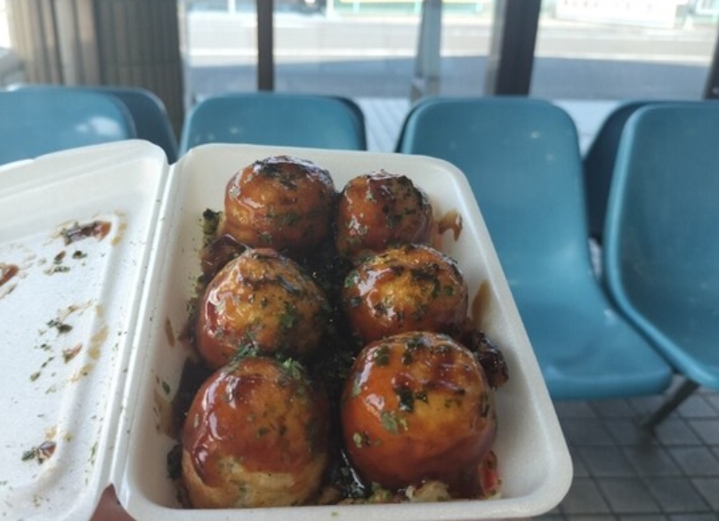 こちらのたこ焼きは一つひとつが大きく、具材のタコもキャベツもたっぷり入った満足度の高い一品。とろとろの生地とシャキッとしたキャベツ、プリプリのタコが絶妙に合わさり、まるで一口サイズのお好み焼きを食べているような食べ応えがあります。三原に来たら立ち寄りたい名店です。