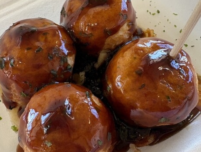 三原を訪れるたびに食べたくなると評判のたこ焼き店。大きくて歯ごたえのあるタコがたっぷり入り、噛むほどに旨味が広がります。キャベツ入りのふわとろ生地にカープソースがよく合い、ボリュームも満点。お腹いっぱいになる満足感で、地元でも人気のたこ焼きです。