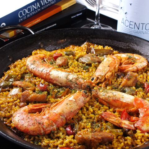 アリオリのパエリアは米の歯ごたえ、スープの旨みも格別。グランドメニューの海老と鶏肉のミックスパエリア、イカスミのパエリア、本日の魚介のパエリアとそれぞれこだわりの素材と技法でぜひ召し上がっていただきたい一品です。