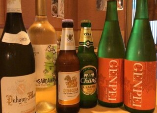 こだわりのドリンクを多数取り揃えております。中でも日本酒とワインは、店主自らが試飲し美味しいと思ったものだけを厳選。地酒は常時7種類と季節ごとに仕入れた銘柄をラインナップしております。新潟県の玉川酒造「魚沼玉風味」や石川県の車多酒造「五凛」、千葉県の稲花酒造「一の宮」などをご用意。