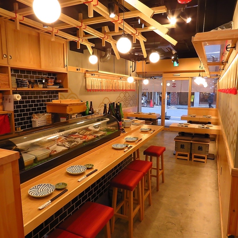 店内は広々としており、大人数でも気兼ねなく楽しめる雰囲気です♪仕事帰りのサク飲みや、友人同士の集まり、女子会にもぴったり!また、カウンター席も用意されているため、寿司職人の技を目その前で楽しむこともできます!