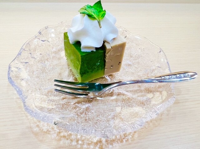 鮨や一品料理を堪能した後は、高品質な「吉野葛」を使用した職人こだわりの『くずきり』を提供いたします。作り置きは一切せず、お客様がすべての料理をお召し上がりになられたタイミングを見計らってお出ししていますので、自家製黒蜜と絡めながら、出来立てだからこそのつるんとした食感を是非味わっていただければ幸いです。