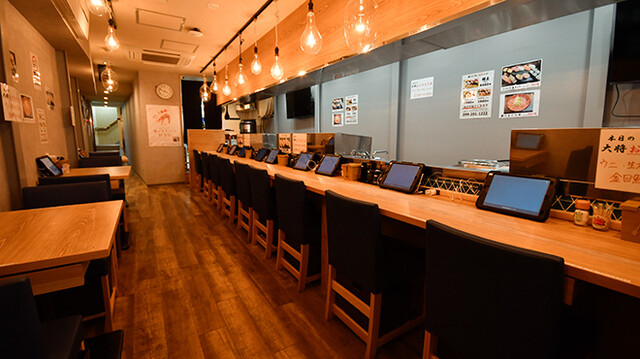 漁港の雰囲気が味わえる1階には、カウンター12席とテーブル席をご用意。落ち着いた雰囲気の2階には、連結可能な2名掛けテーブルのほか、18名様までご案内できる掘りごたつ席、40名様までフロア貸切もでき、大型モニターもお使いいただけますので大人数のお集まりにもぴったり!前日までのご予約でデザートプレートのご提供も承っておりますので記念日利用にも最適です◎