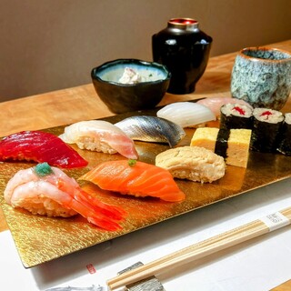 ランチのお得なおきまり握り鮨(10貫+巻物+小鉢+お椀)【2,500円(税別)にてご提供致します】11時30分〜13時30分(昼営業閉店)ご利用頂けますお一人様も、お気軽にお越しください。お席の予約は4名様〜12名様より承り致します