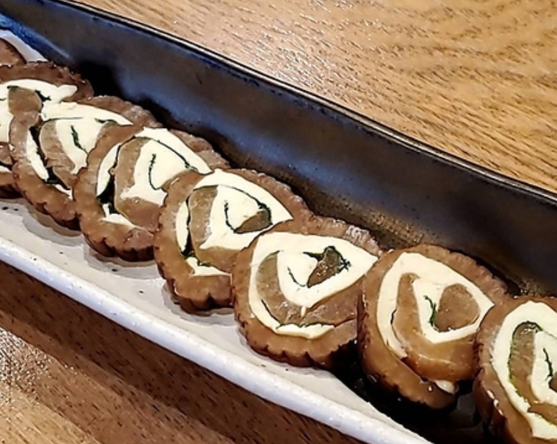 割烹TAKEYA看板メニューの雲丹の牛肉巻・・・巻くのをやめてお手頃価格に!!!特別な思い出を演出します!実は隠れVIP席?厨房前のカウンター。厨房の臨場感を感じながらお食事をお楽しみください!!!