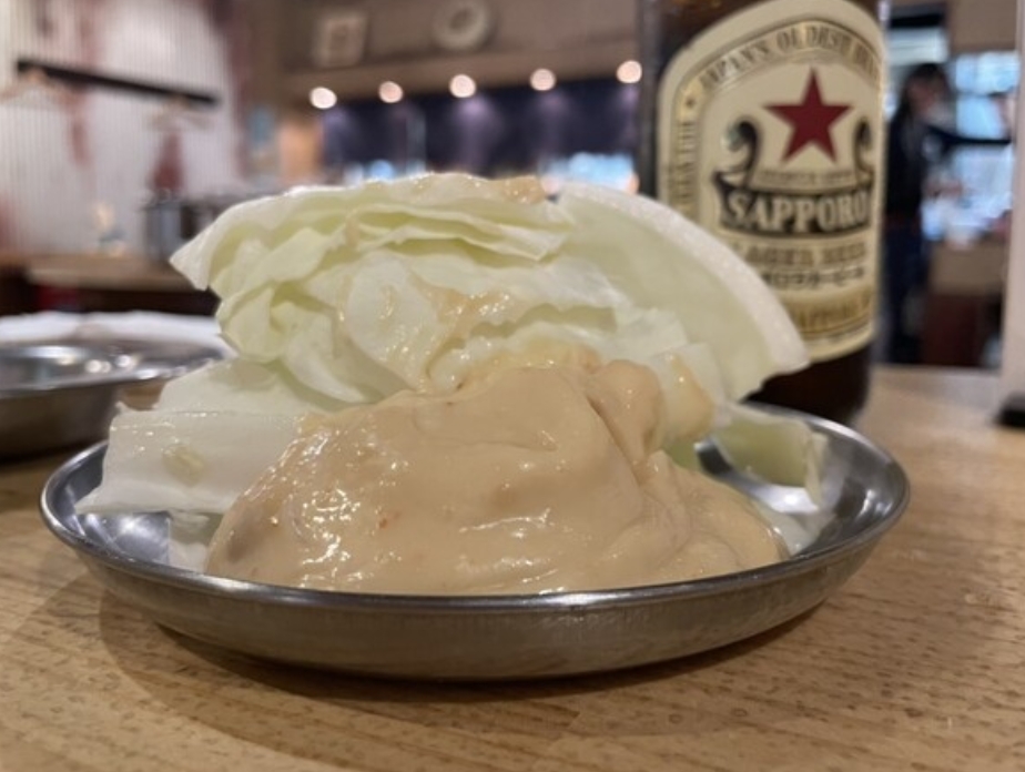 新鮮キャベツをセルフで食べ放題!クセになる特製マヨソースと一緒に、何皿でも食べたくなる名物メニュー。空豆やポテサラ、アジフライなどの一品料理も絶品です。
