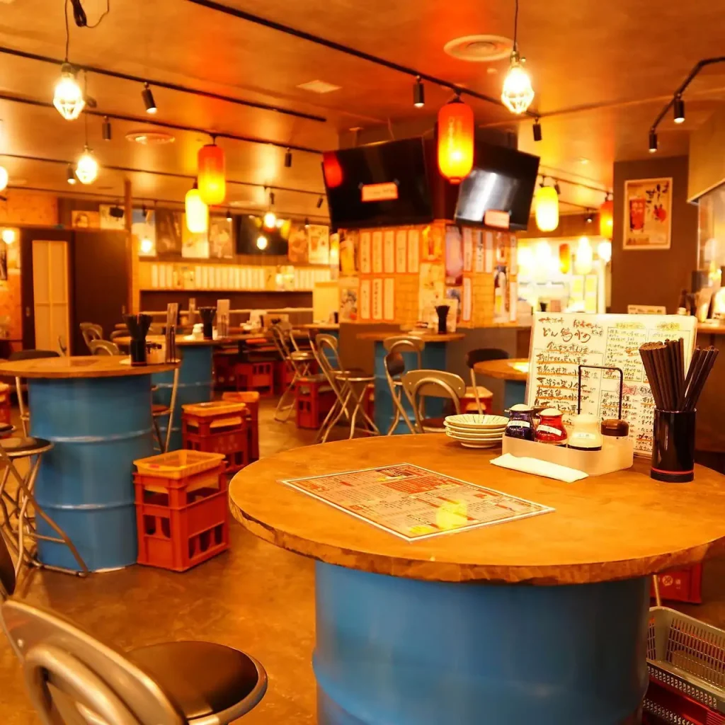 ドラム缶テーブルや個室、カウンター席など様々なお席をご用意しております!店内はTV完備しているので野球中継などをみながら飲むことも可能!