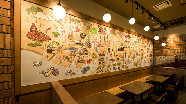 広島駅南口より徒歩1分の場所にある当店は、まさに“広島観光の玄関口”♪店内には観光マップが掲示されており、QRコードを読み込めばそこにまつわるウェブサイトにアクセスできる優れもの◎お席はテーブル席、カウンター席がございますので、おひとり様でもグループでもぜひお立ち寄りください♪
