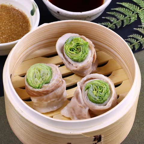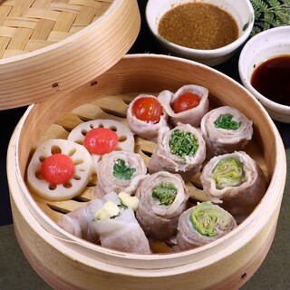 当店の蒸籠蒸しは、品揃えが豊富です。一つ一つ丁寧に手包みし、じっくりと蒸し上げることで、旨味が詰まった一品に仕上げてします。特におすすめは鶏焼売で、ジューシーでさっぱりとした後味が特徴。蒸し立てのアツアツをそのままご提供いたします。また、野菜巻きも種類豊富で、豚レタス巻きや豚大葉チーズ巻き、丸ごとトマト肉詰蒸しなど、ユニークなラインナップ。
