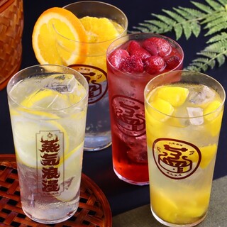 当店では、見た目も楽しいSNS映えするドリンクをご用意しています。定番ドリンクに加えて、いちごやマンゴーなどがゴロゴロ入った「フルーツサワー」や、青い見た目でレモンサワーの味が楽しめる「青いレモンサワー」、梅しその爽やかな味わいとピンク色がかわいい「バイスサワー」もございます♪