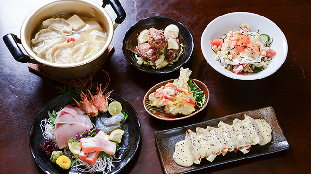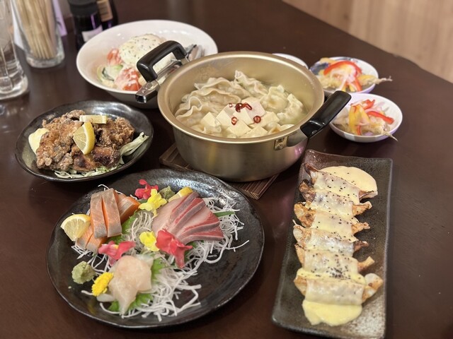店主の地元である高知県直送の鮮魚を使った「刺身」は、ぜひ味わってほしい自慢の逸品!肉々しく満足感たっぷりの「餃子」は3個または5個から選ぶことが出来、トロトロのチーズがたまらない「チーズ餃子」が人気です◎そのほか、蟹の旨味と天ぷらの香ばしさが相性抜群の「蟹味噌天ぷら」や、本格的なスパイスを使用しシビ辛に仕上げた「麻婆豆腐」もおすすめ。時期ごとに内容が変わる、季節限定メニューもお見逃しなく!