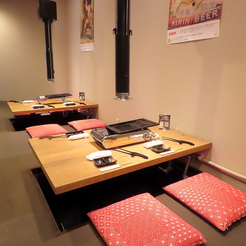 アットホームな雰囲気が魅力の大衆焼肉屋です。店内には、最大28名までご案内可能なテーブル席をご用意。周囲に気兼ねなく寛げる半個室の掘りごたつ席は、仕切りを外すことで22名様までご利用いただけます。ご家族・友人とのお食事や団体様のお集まりなど、幅広いシーンにどうぞ!