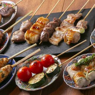 当店では鳥取県産”匠の大山鶏”を使用!焼き鳥は、備長炭で表面をカリっと焼き上げるためジューシーで旨味たっぷりです!皮を巻いて表面を焼く「もも」や大葉が香る「自家製つくね」などを揃えております!