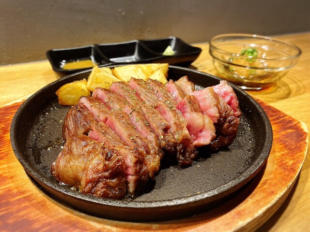 最上級黒毛和牛のサーロインステーキが登場!ガーリックバター醤油、岩塩、わさび、昆布おろしポン酢の味付けでお楽しみいただけます!
