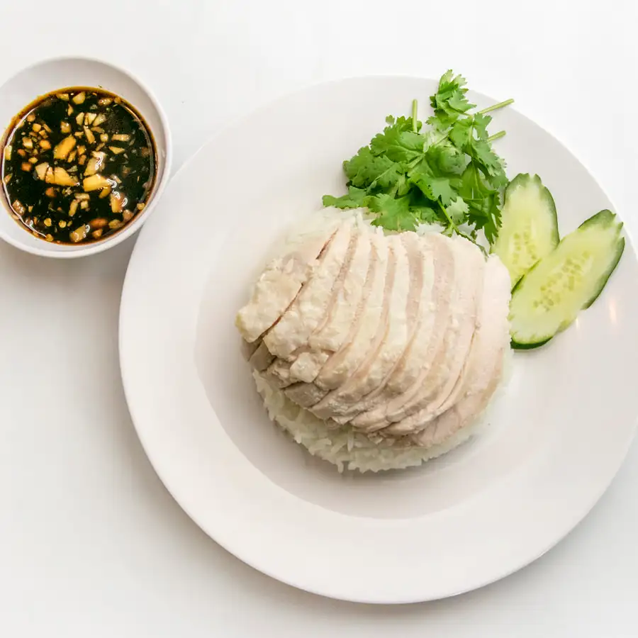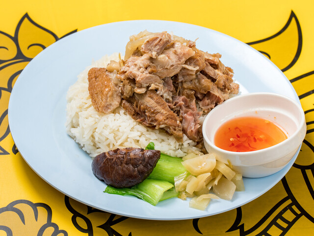 当店名物「カオマンガイ 979円(税込)」は、しっとり柔らかい朝締めの鶏肉と、その濃厚な旨味が詰まったタイ米、秘伝ソースのコンビネーションが絶妙!