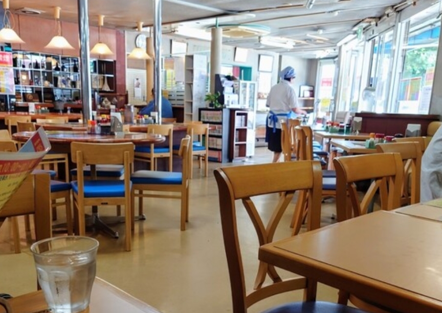 テーブルや椅子はピカピカ、スタッフは元気で明るく、食事もボリューム満点。昔ながらの味と空気感に癒やされる、地域密着の人気店。パンも販売していて、食後のお土産にもぴったりです。