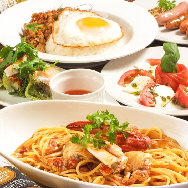 ランチタイムはアジアン、プレート、パスタ、ピザの4ジャンルから選べる充実内容。すべてのセットにドリンクが付いてお得感も◎。ボリュームとバランスを兼ね備えた料理は、仕事の合間や休日ランチにぴったり。気軽に立ち寄れる使い勝手の良さが支持されています。