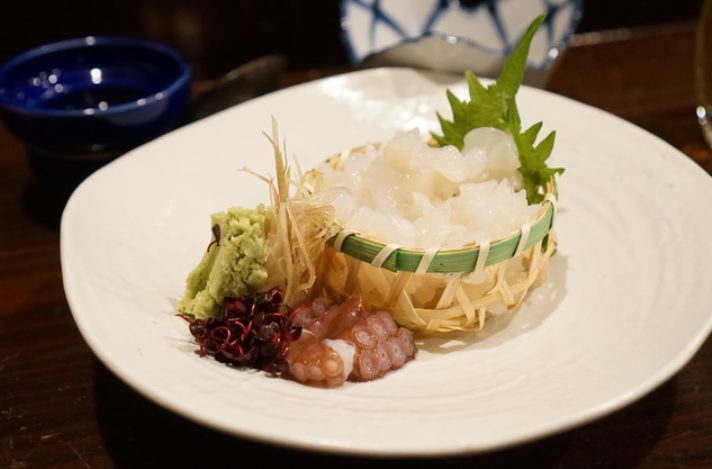 店内の水槽で泳ぐ活ダコを使用し、みずみずしくぷりぷりの食感を堪能できます。踊り食いは、動きのある新鮮な足を胡麻油でいただく迫力の逸品。タコ本来の甘みと弾力を存分に味わえる、専門店ならではの贅沢な体験が待っています。