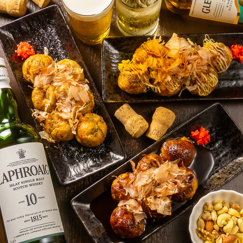 当店はおひとり様でも仕事帰りにサクっと気軽に寄れるカウンター席をご用意しております。さらにカウンターからはたこ焼きを焼くようすが見えるので、目でもお楽しみいただけます。目の前でこんがり焼かれるたこ焼きは食欲をそそります…